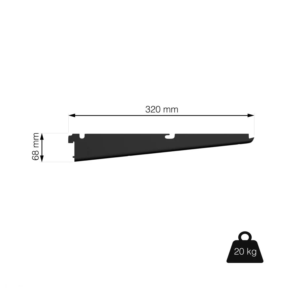 Fém gerenda drótpolcokhoz matt fekete színben, 320 mm mély, 68 mm magas.