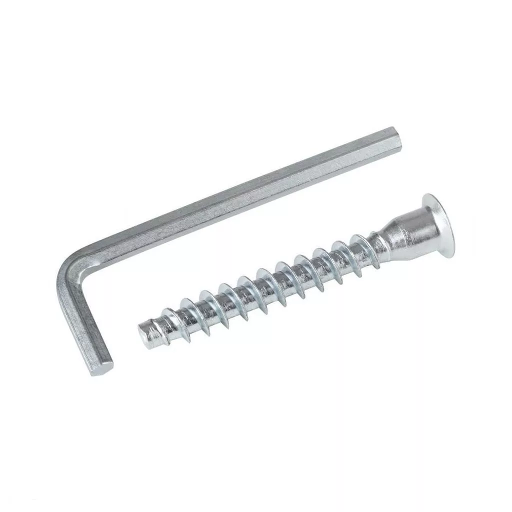 7 mm átmérőjű és 50 mm magas, horganyzott acélból készült Confirmat összekötő csavar fogantyúval. A csomag 8 darabot tartalmaz.