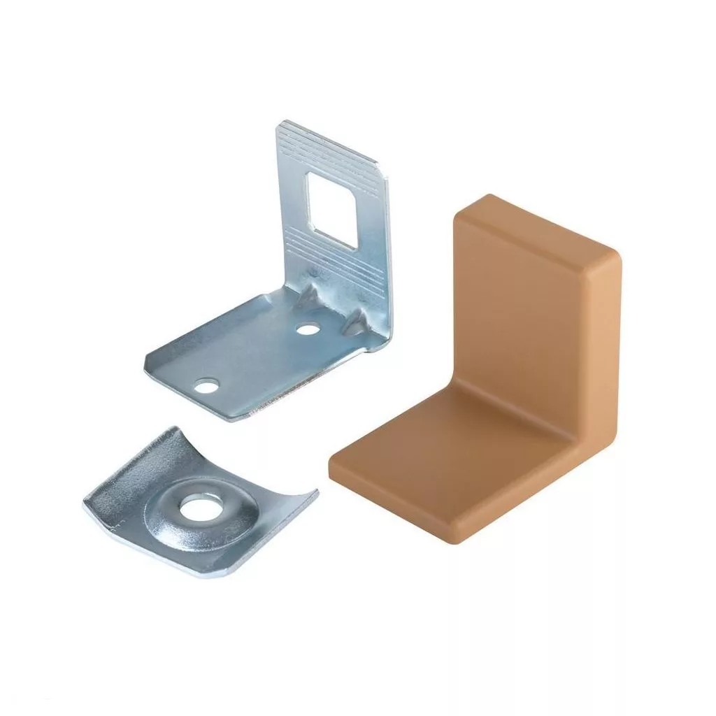 BYSTRICA márkájú fém egyenirányító szerelvények, bézs színű műanyag borítással, szélessége 39 mm, magassága 49 mm, teherbírása 40 kg. A csomag 2 db-ot tartalmaz.
