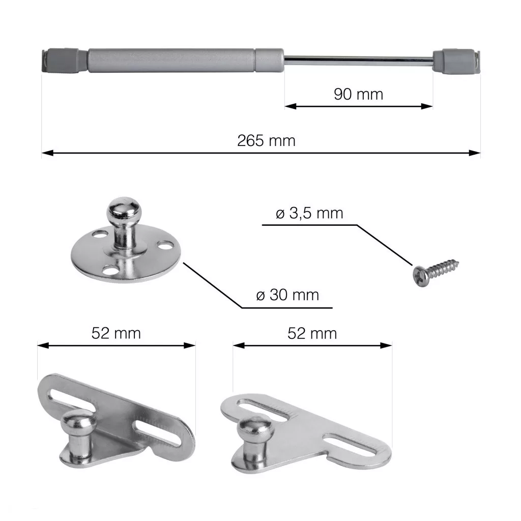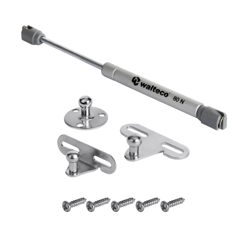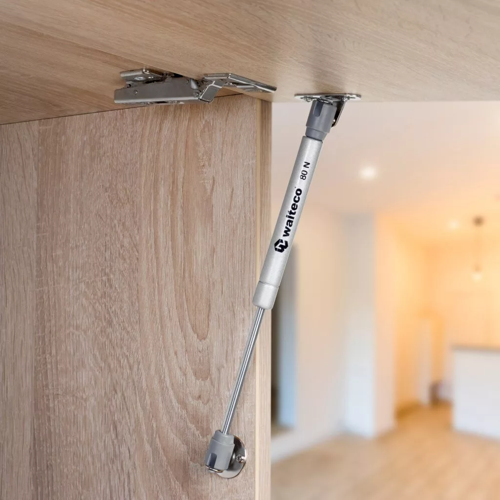 A 80 N ellenállási erejű csillapító gázrugót a csuklós ajtó sima nyitására és nyitott helyzetben történő rögzítésére használják. Ha bizonytalan a gázrugót kiválasztani, a következőket javasoljuk: