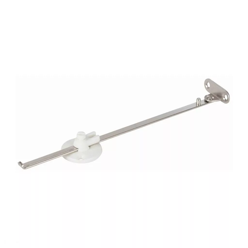 275 mm hosszú fém testű, csuklós ajtófék, reteszelőgyűrűvel a zárt helyzetben történő rögzítéshez. Az ajtó bal és jobb oldalán is használható. A test minimális szabad magassága 240 mm. Csavaros rögzítés - a szerelési anyagok mellékelve.