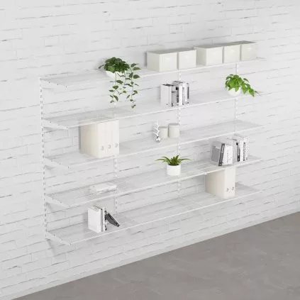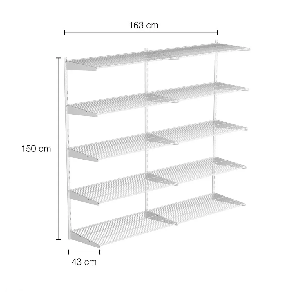 Univerzális fali polcrendszer DOUBLE (1500 × 1630 mm) 10 polccal két oszlopban.