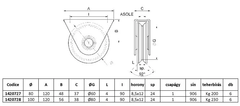 Roletă de poartă glisantă 80 mm bază în "Y" 411 italiană