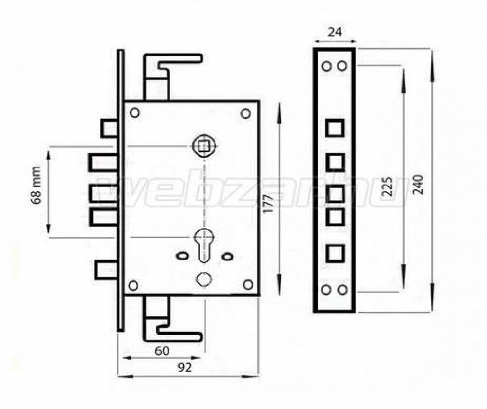 Încuietoare principală chinezească, îngustă, cu 4 șuruburi plate, Hi-Sec, univ., 24 mm