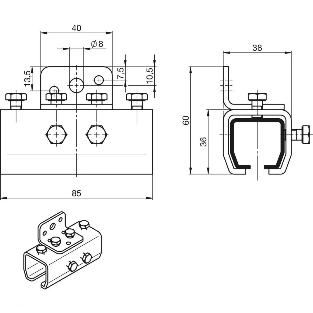 Kombinált csatlakozó/összekötő hüvely HELM 103 fali szereléshez acél horg.
