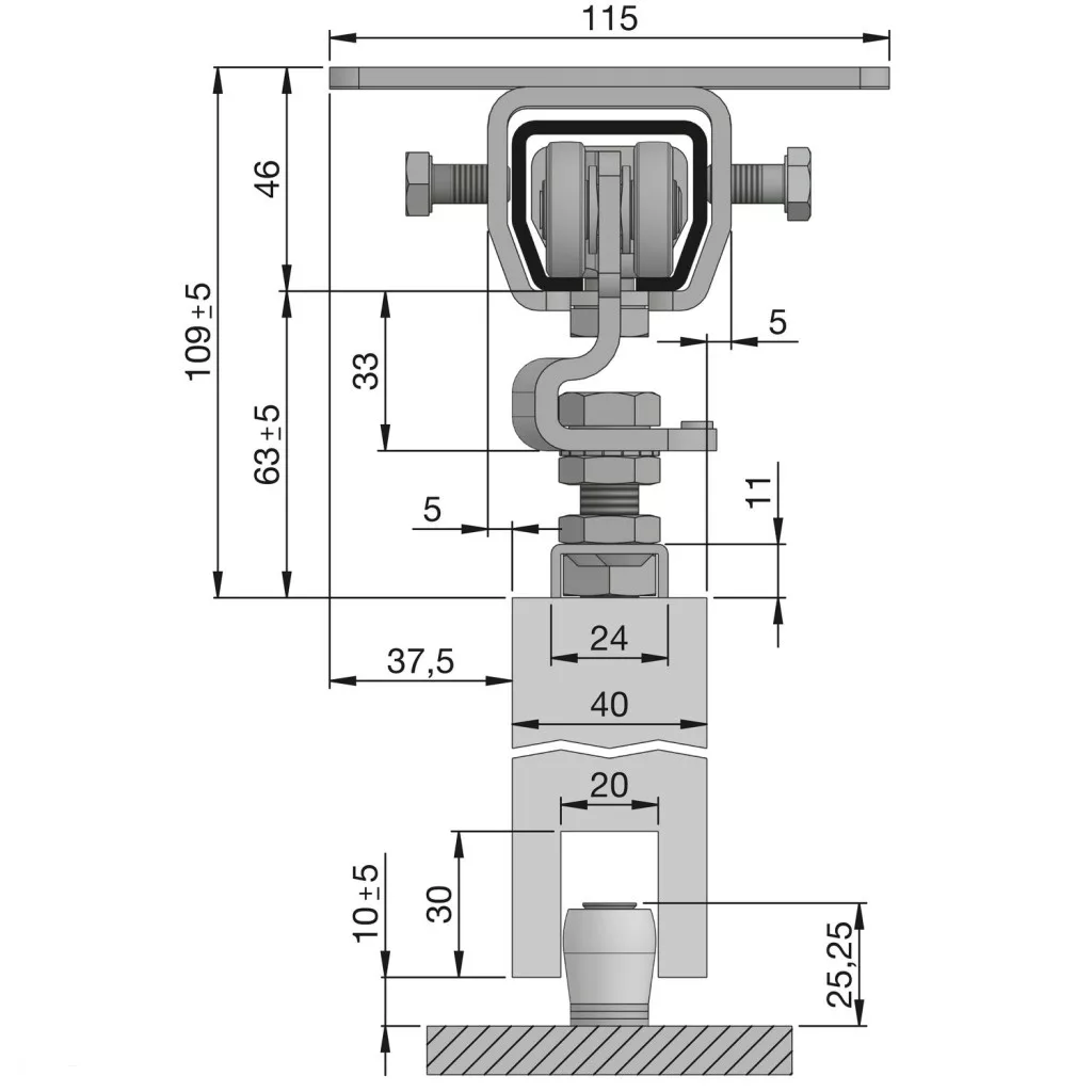 Tolókapu vasalatkészlet HELM 300 mennyezeti szerelésű max. 200 kg acél horg.