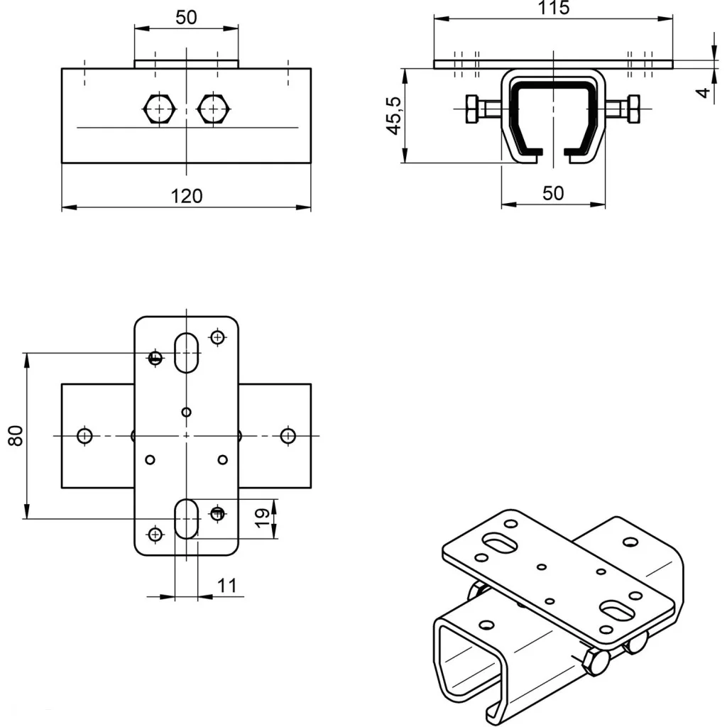 Kombinált csatlakozó/összekötő hüvely HELM 307 mennyezeti szereléshez acél horg.