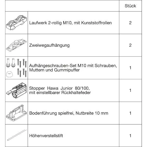 HAWA Junior 100/Z vasalatgarnitúra fa 1 Standard ütköző