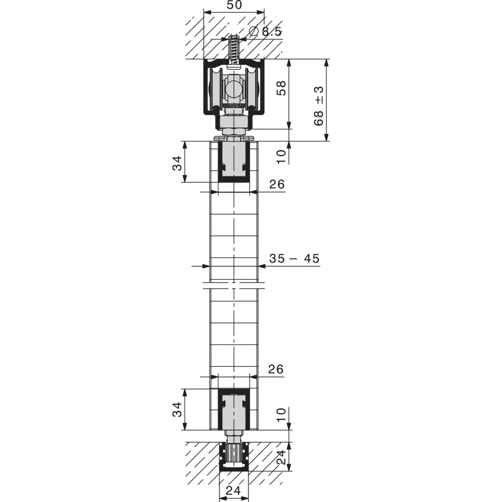 HAWA-Variofold 80/H vasalatgarnitúra forgócsapággyal és vezetővel