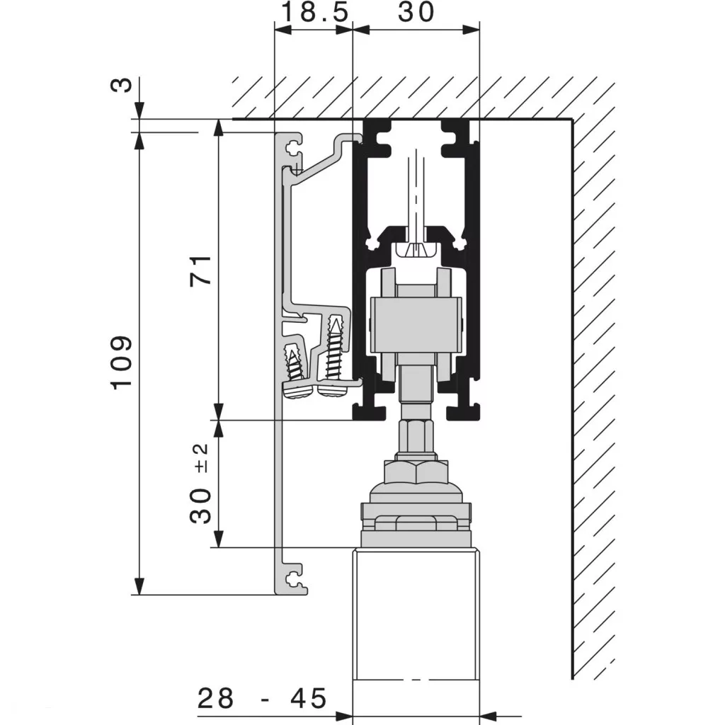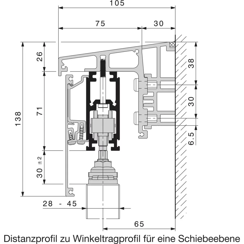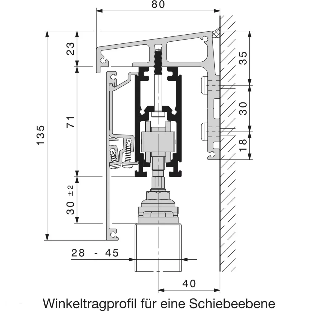 HAWA-Frontslide 60/A alapgarnitúra tolószárnyhoz min. 400mmvastagság: 28-45mm