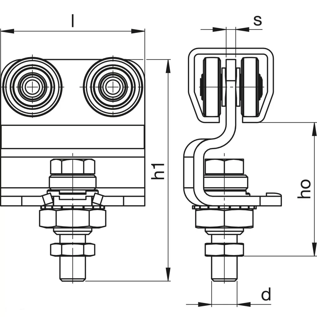 Tolóajtó görgő HELM 186 kétpáros két pár forgócsapágyakkal horg. acél sárga