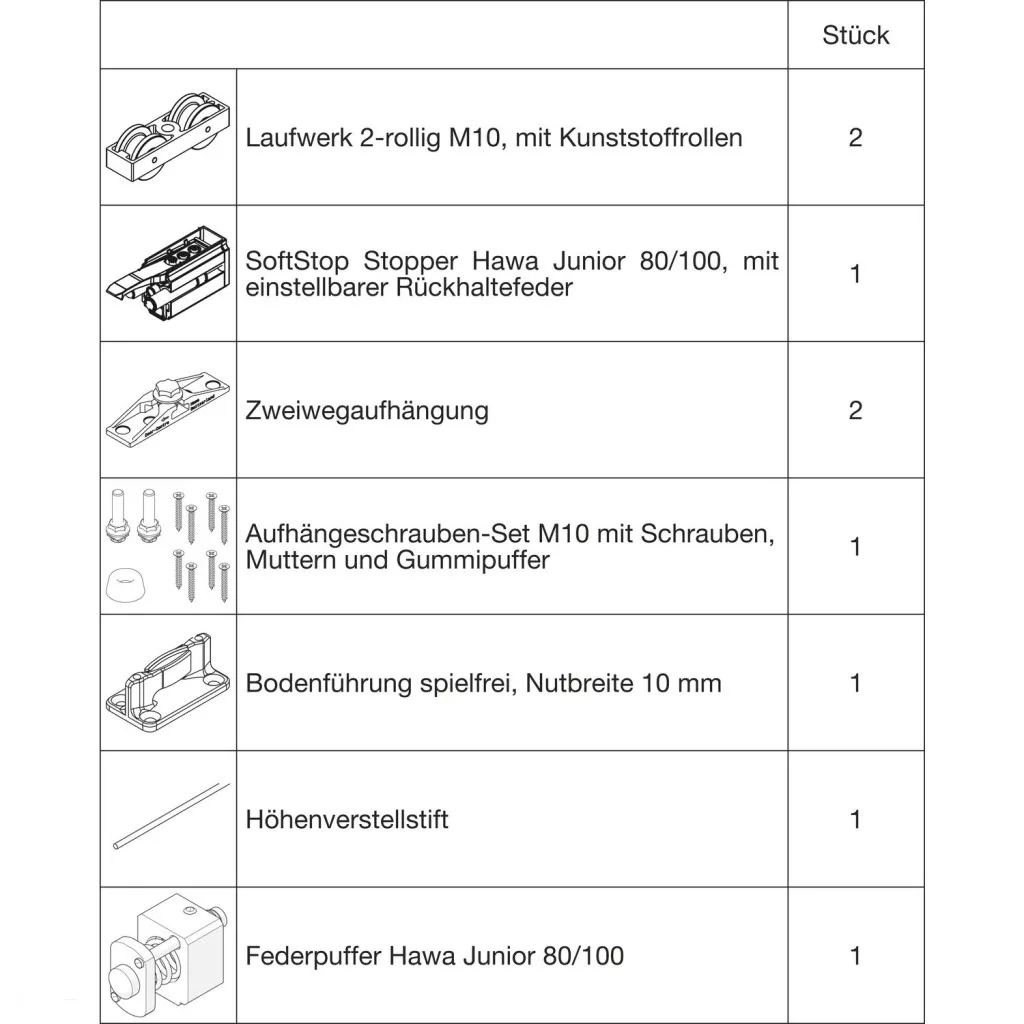 HAWA Junior 100/Z-Pocket vasalatgarnitúra fához SoftStop rugós ütköző (30239)