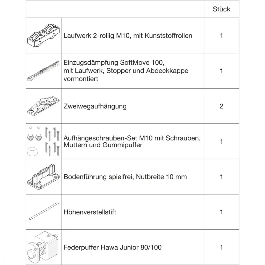 HAWA Junior 100/Z-Pocket vasalatgarnitúra fához SoftMove rugós ütköző (30243)