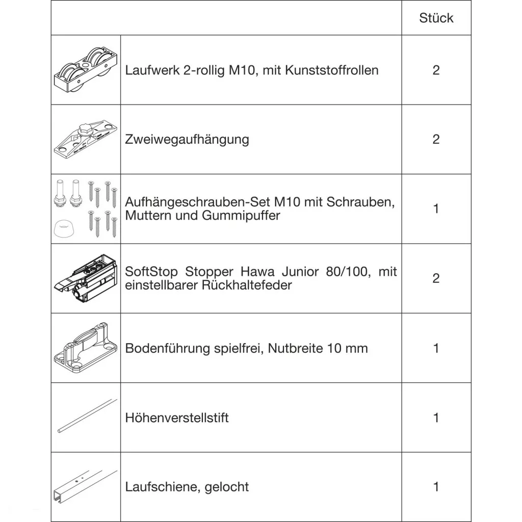 HAWA Junior 100/Z vasalatgarnitúra fához SoftStop futósín 1800 mm ezüst