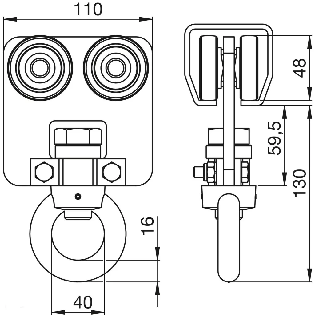 HELM kétpáros görgős egység 524Ri egyéni védőfelszereléshez horganyzott sárga