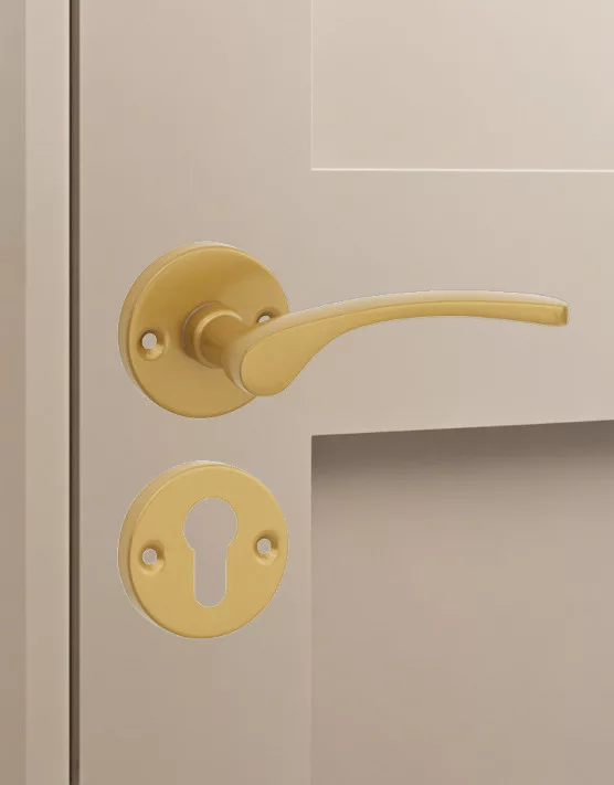 Jednoduchá inštalácia základnej kľučky dverí s peknými líniami. Upevňovacie skrutky sú natreté farbou, ktorá je súčasťou balenia.