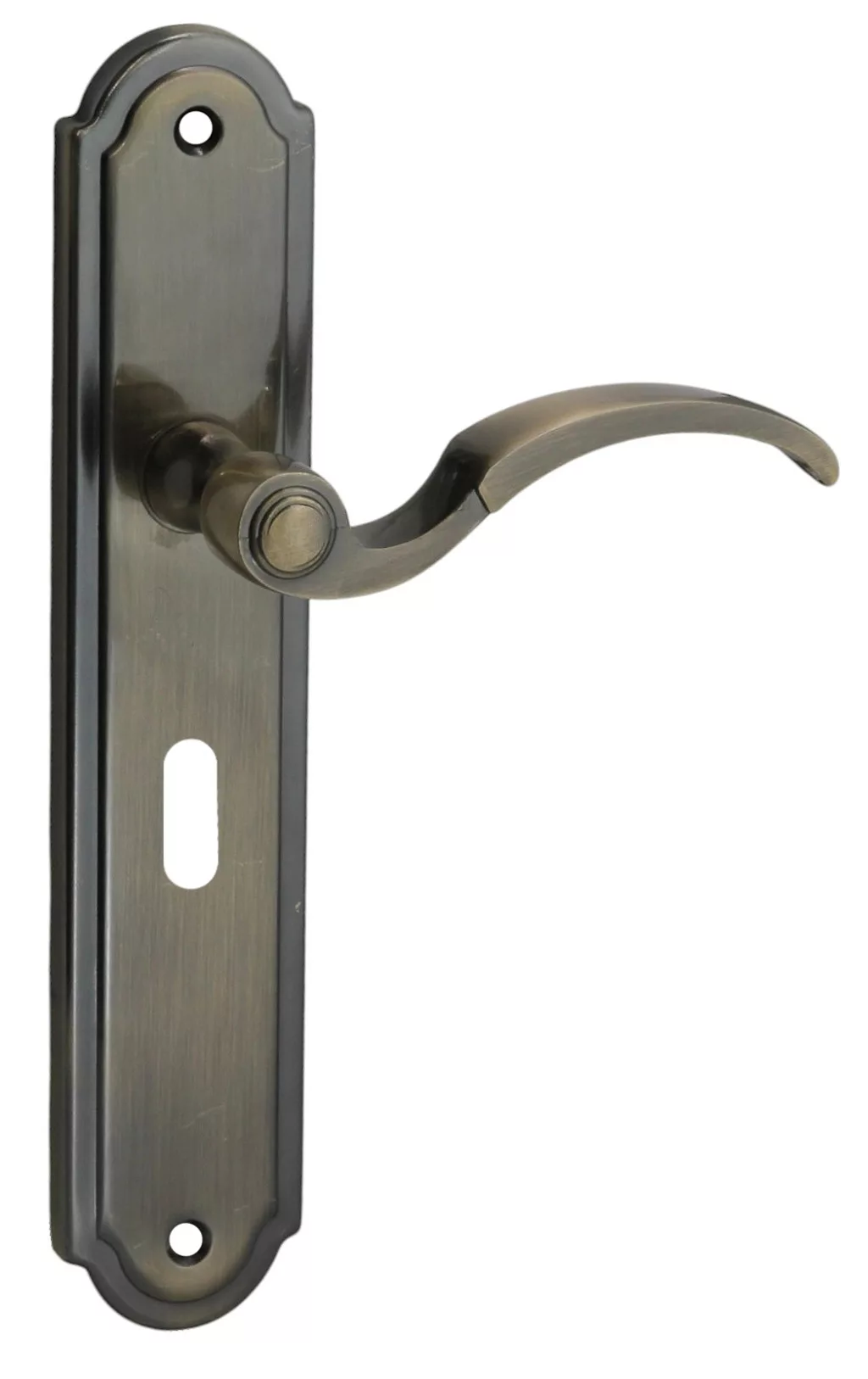 Kľučka s efektom brúseného bronzu je dostupná u nás na sklade za výhodnú cenu. V posledných rokoch sa zaslúžene stal obľúbeným typom. Odporúča sa na zdobenie dverí v apartmánoch v rustikálnom, modernom a eklektickom štýle. Povrch tohto výrobku, ktorý nie je vyrobený z medeného materiálu, získava konečnú podobu galvanizáciou. Veľkosť štítku na dvere 218 mm x 43 mm. Veľkosť rukoväte: 110 mm. Jarný dizajn. Vyhľadajte OBI