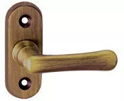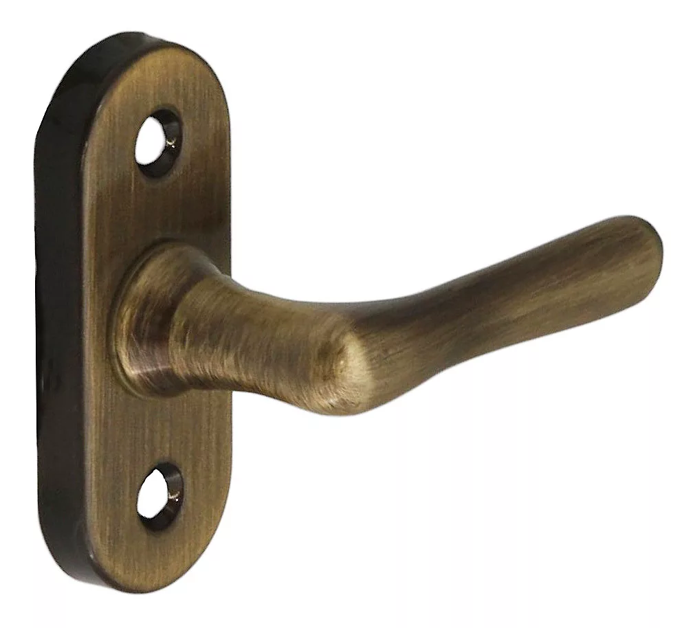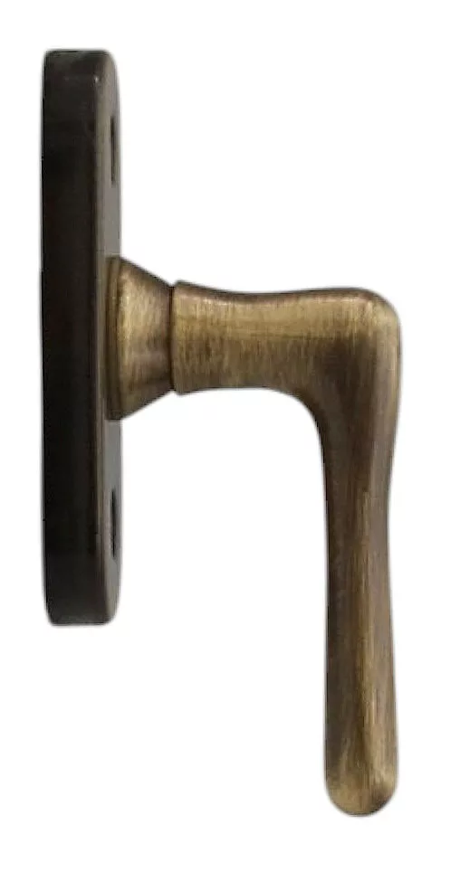 Okenná kľučka z materiálu Bras s povrchom chráneným lakom, antikolekcia. Veľkosť otvoru hriadeľa v rukoväti: 6x6 mm.