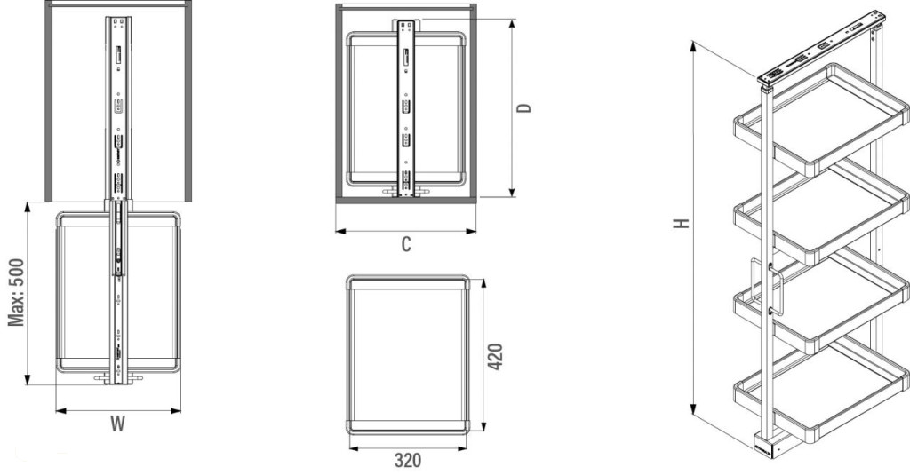 Kihúzható gardrób polcrendszer R antracit 1600-1800mm