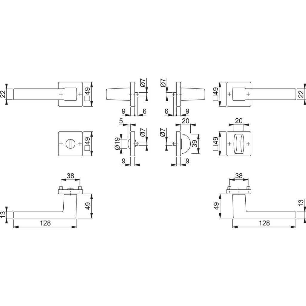 • Rozetové kľučky dverí