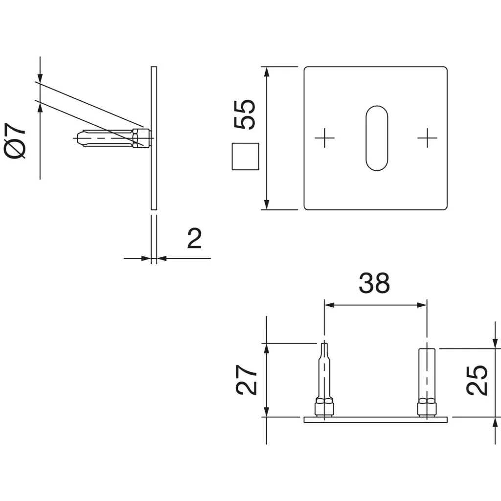 HOPPE kulcsrozetta lapos, támaszbütykökkel, szögletes, rozsdamentes matt
