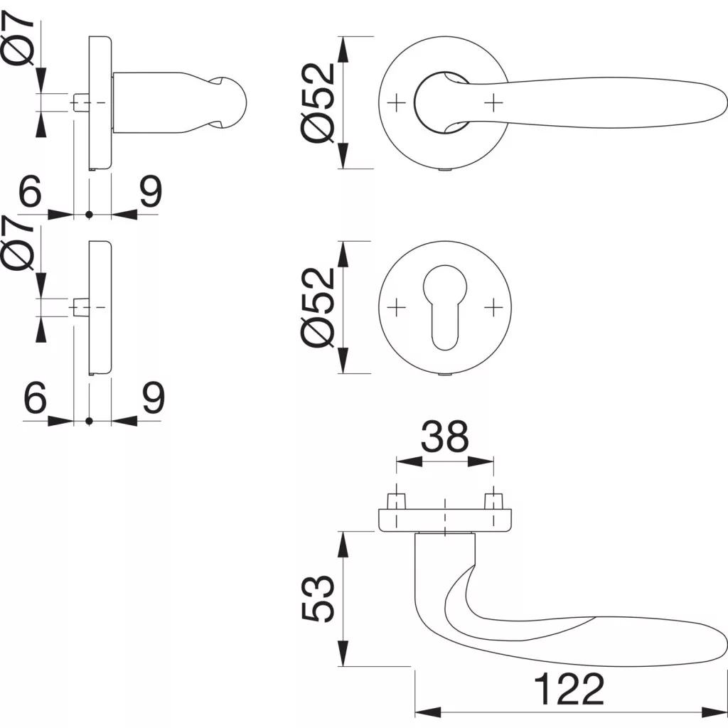 A rozettás kialakítás letisztult és elegáns megjelenést biztosít, miközben a könnyű és gyors felszerelés jelentősen megkönnyíti a beépítést új ajtók esetén és felújításkor egyaránt. Az ergonomikus forma kényelmes fogást és megbízható működést nyújt a mindennapi használat során.