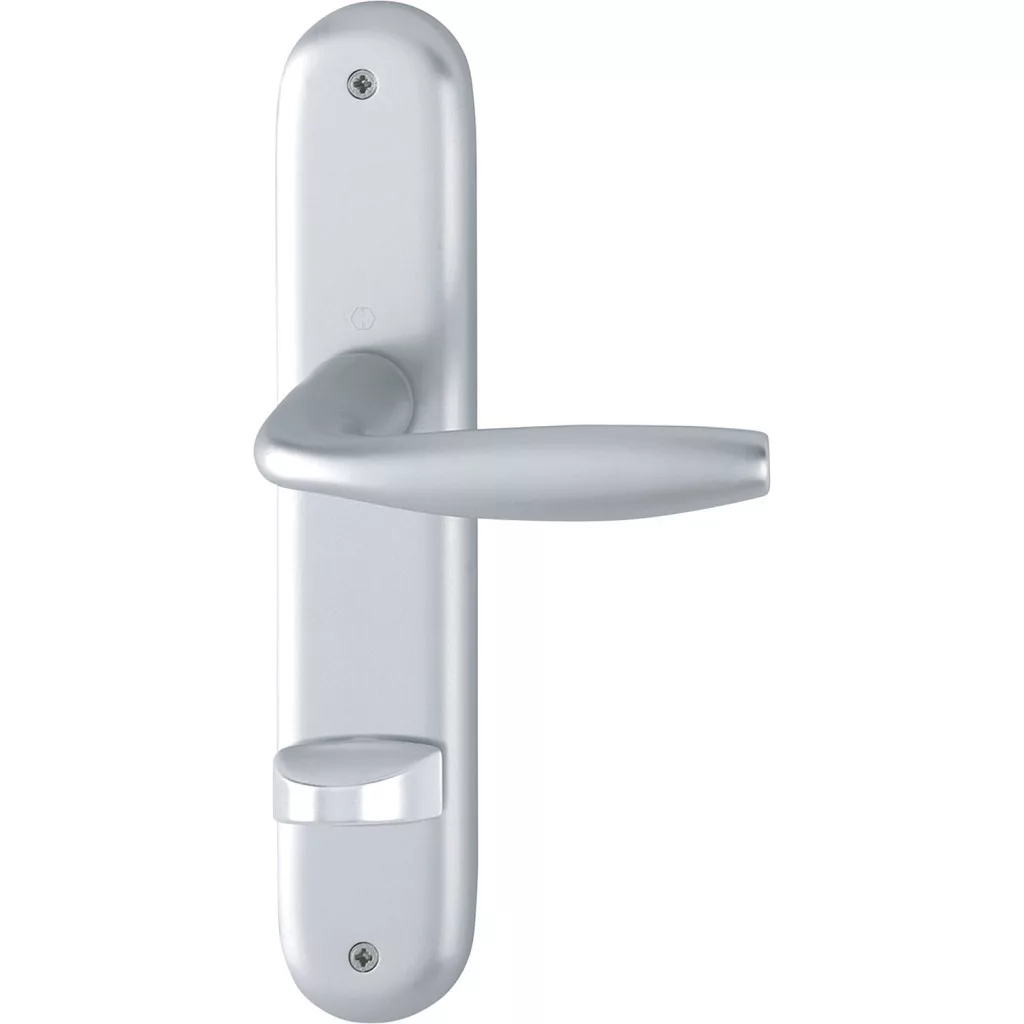 A hosszúpajzsos kivitel egységes, rendezett látványt nyújt az ajtólapon, mivel a kilincs és a WC-zár egy közös pajzson kap helyet. Az ezüst eloxált felület elegáns, matt hatású fényt ad, amely könnyen kombinálható más fém kiegészítőkkel, például ajtópántokkal vagy fürdőszobai szerelvényekkel.