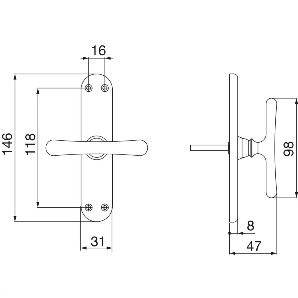 Rozetta (mm): 31 x 146 x 8