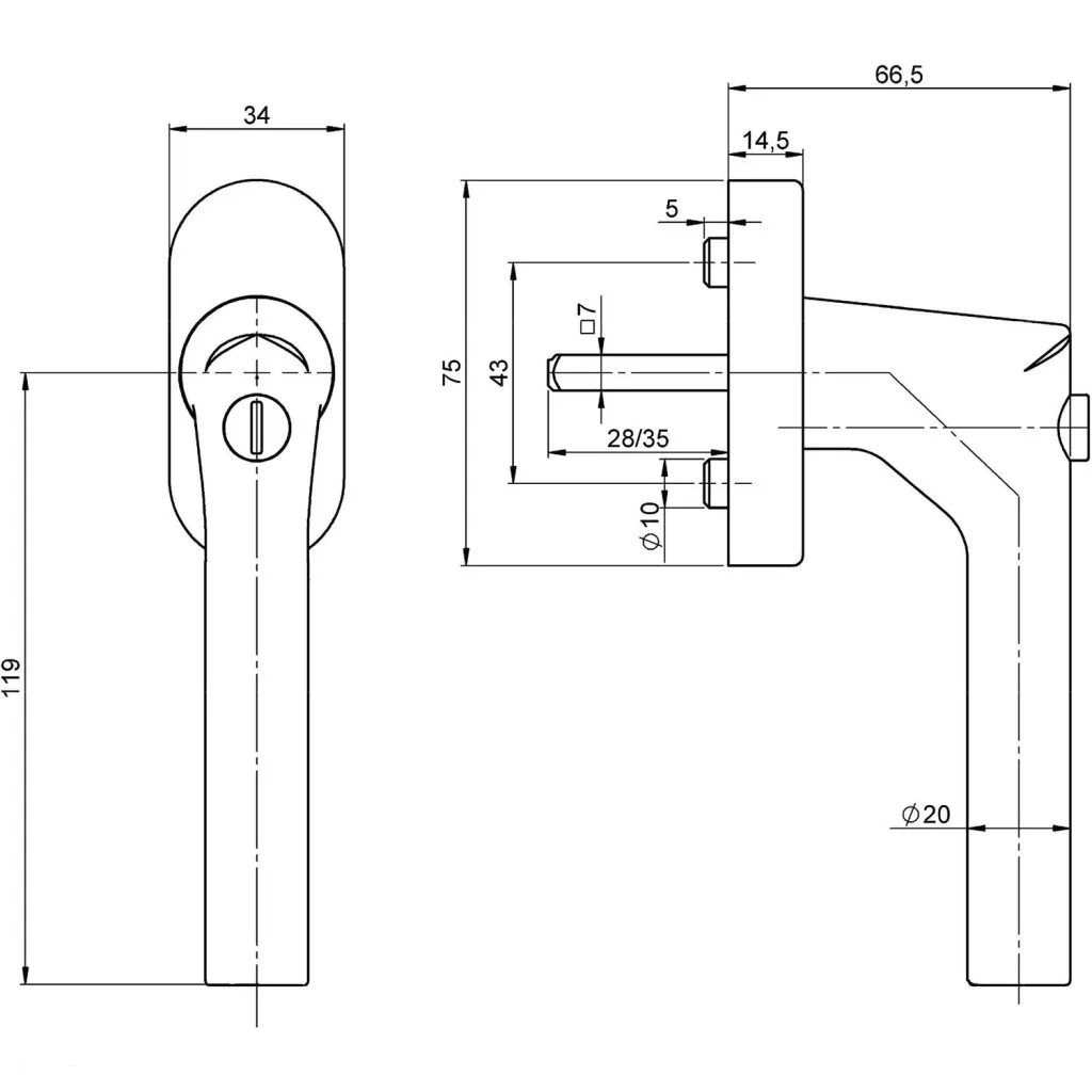 2. Okenné kľučky v tvare "L"