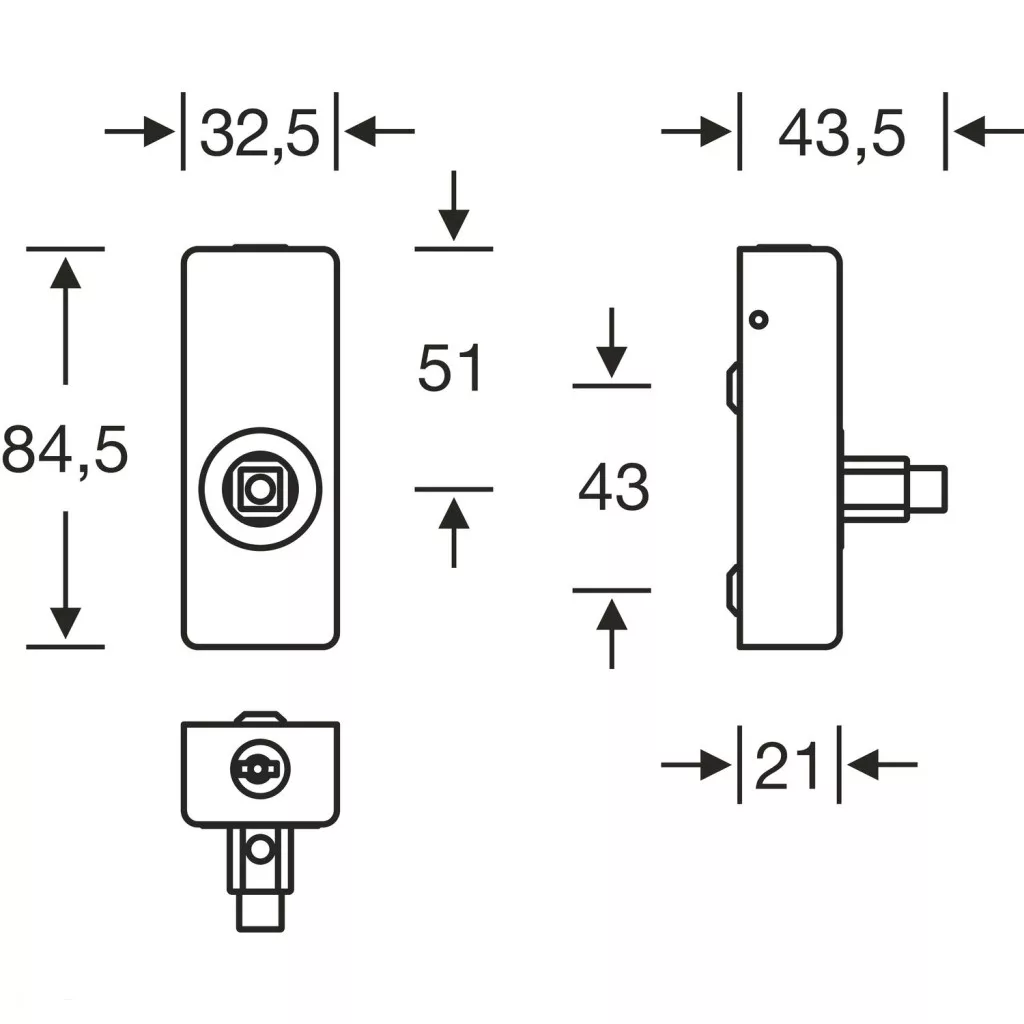 Rozetta (mm): 32,5 x 84,5 x 21