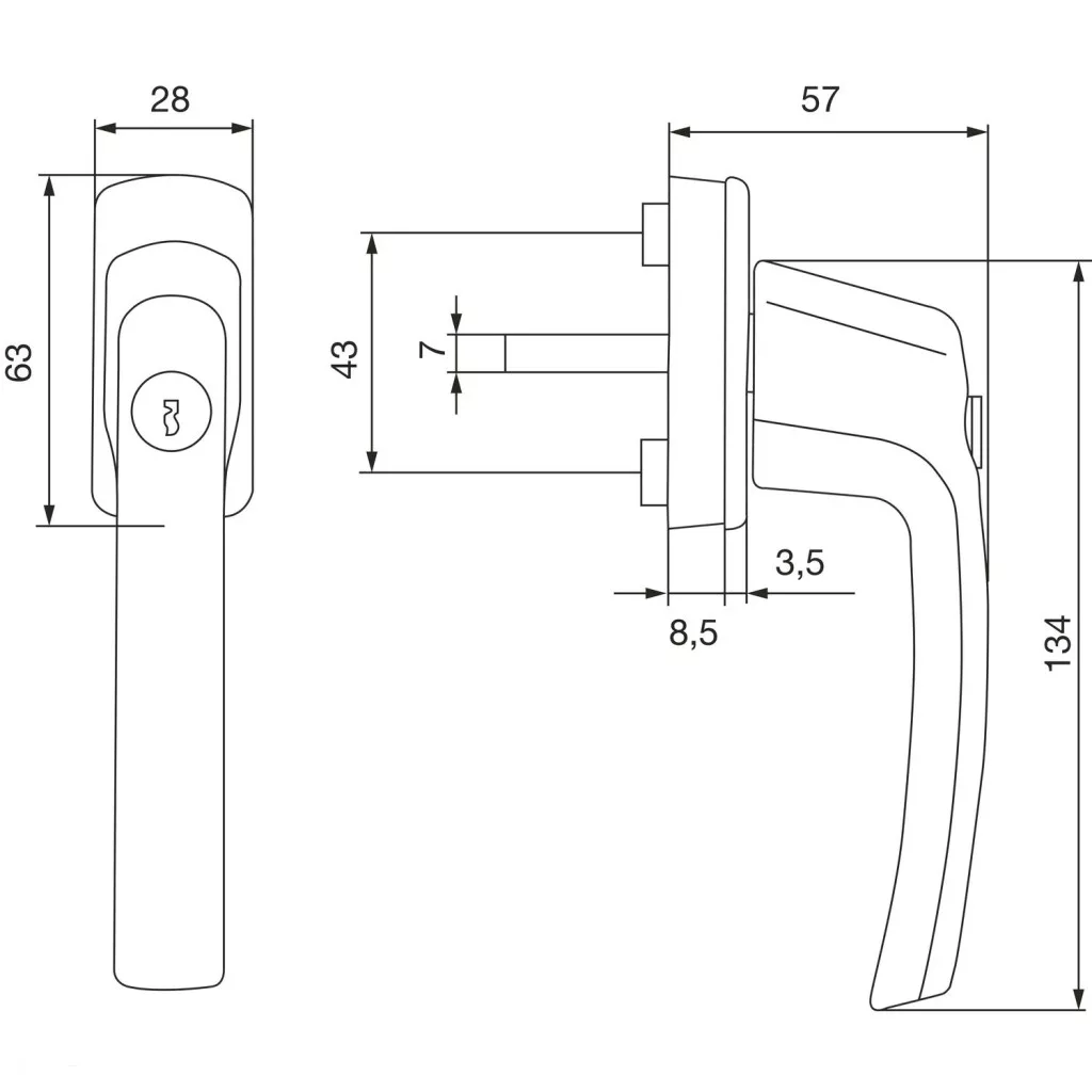 Rozetta (mm): 28 x 63 x 12
