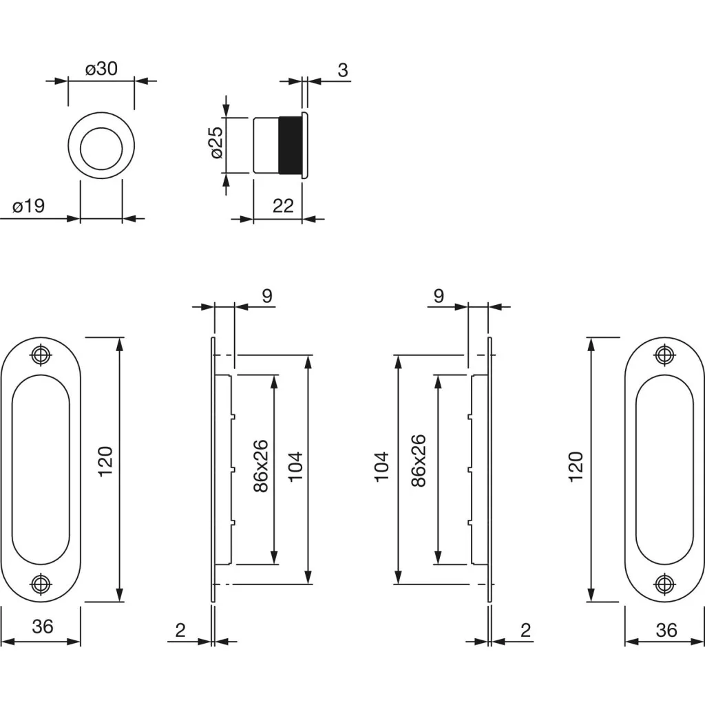 HOPPE tolóajtókagyló szett 4930, lyukasztás nélkül, alu fényes rézszínű F271