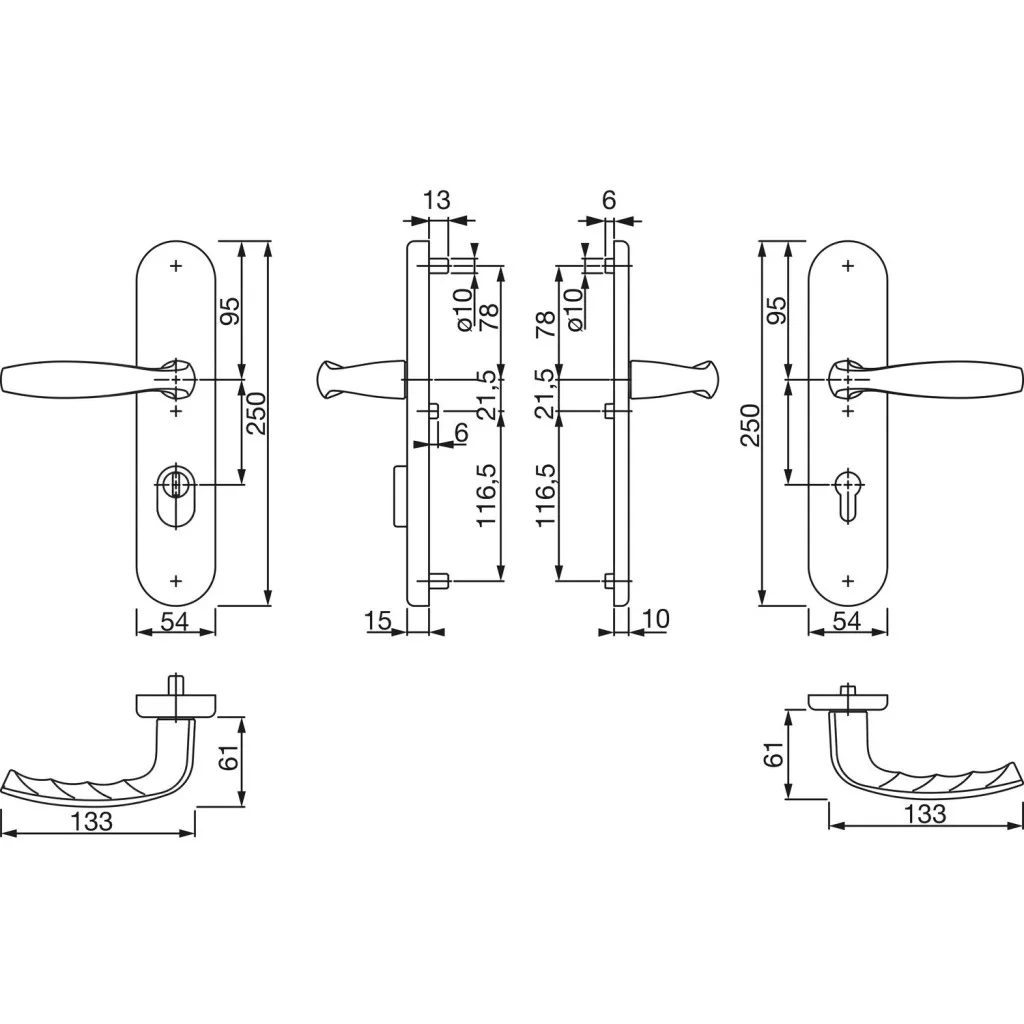 A pajzsos kialakítás fokozott védelmet nyújt az ajtózár számára, miközben esztétikusan illeszkedik a különböző ajtótípusokhoz. A könnyű és gyors felszerelés megkönnyíti a beépítést új ajtók esetén és felújításkor egyaránt. Az ergonomikus formatervezés kényelmes és biztonságos használatot biztosít a mindennapokban.