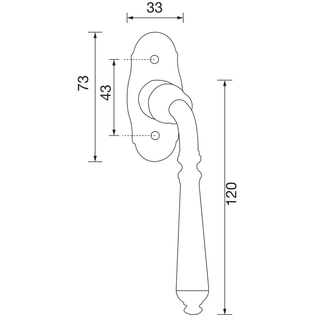 Rozetta (mm): 33 x 73 x 3