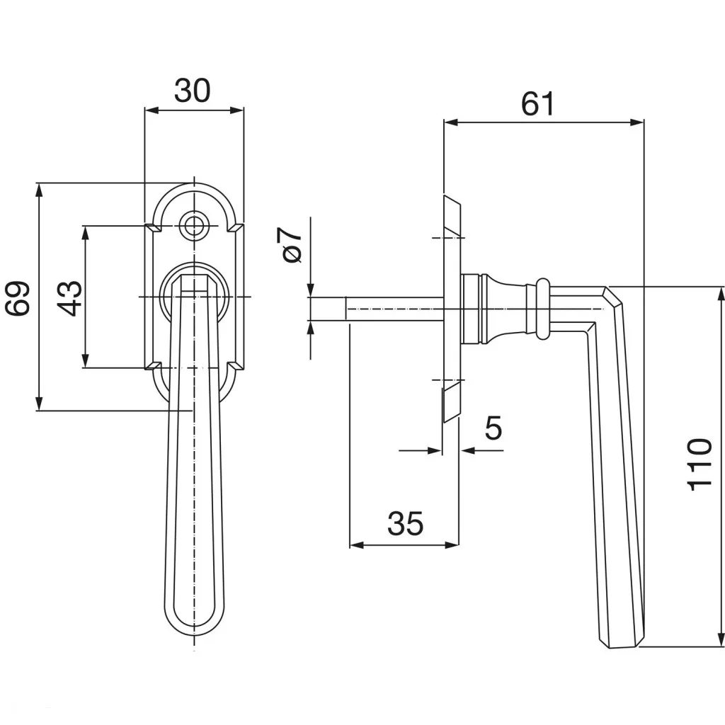 GRUNDMANN ablakkilincs ALT-WIEN 904H látható csavarozás 7x35 polírozott réz