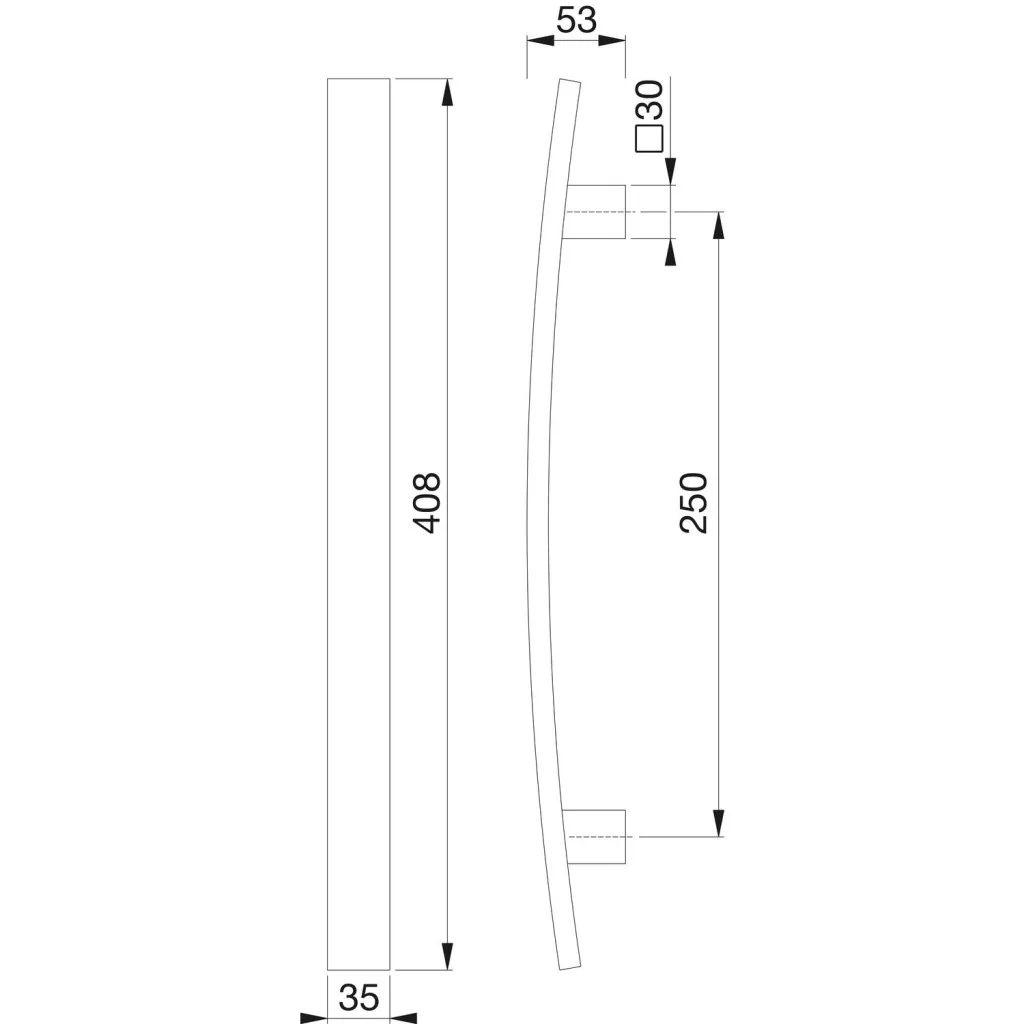 HOPPE íves fogantyú E5606 - szögletes ívelt, 408/250, nemesacél matt