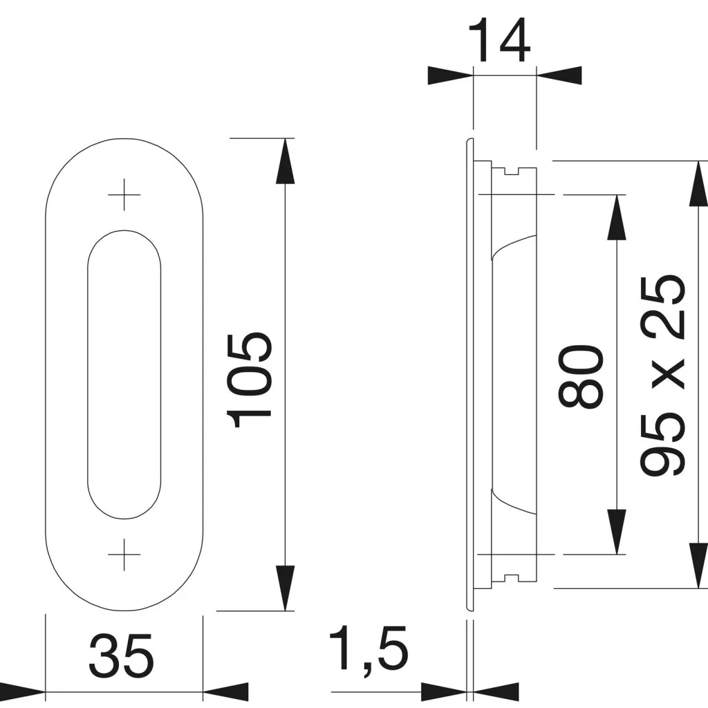 HOPPE tolóajtókagyló ovális, alumínium nemesacél hatású