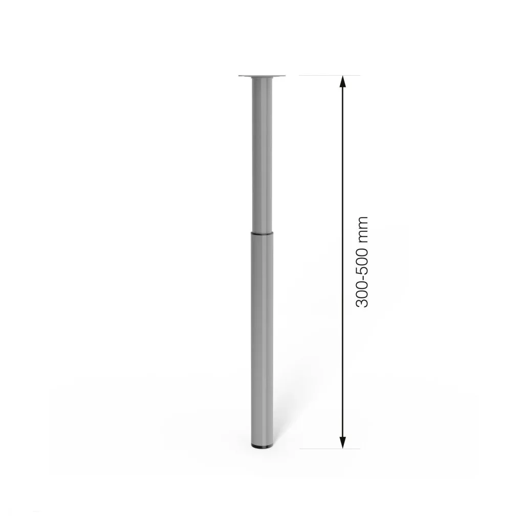 Magasságban állítható kerek bútorláb szürke kivitelben, 30/25 mm átmérővel és 50 kg teherbírással. A bútorláb alapmagassága 300 mm, felfelé csavarozva 500 mm-ig állítható. Cikkünk segít a magasságban állítható bútorlábak kiválasztásában.