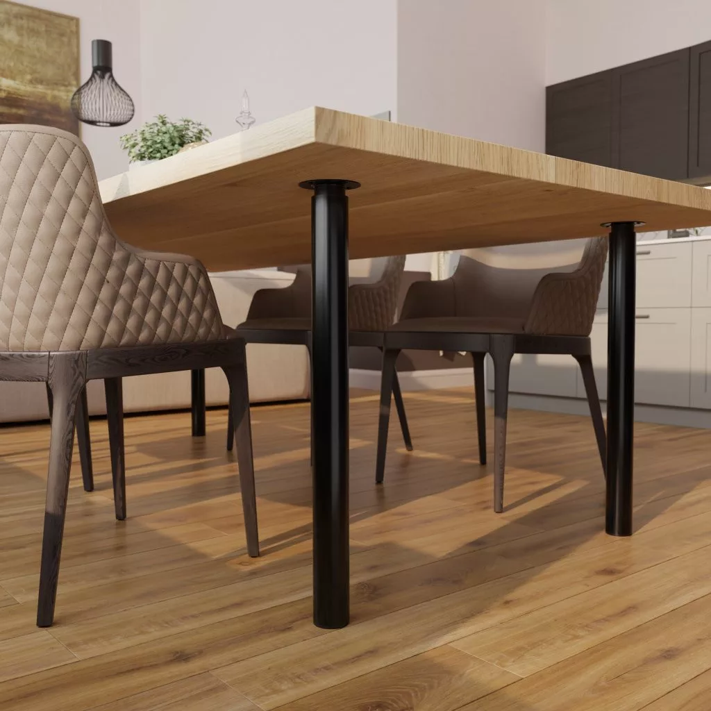 Magasságban állítható kerek bútorláb fekete kivitelben, 60/50 mm átmérővel és 80 kg teherbírással. A bútorláb alapmagassága 700 mm, felfelé csavarozva 1100 mm-ig állítható. Cikkünk segít a magasságban állítható bútorlábak kiválasztásában.