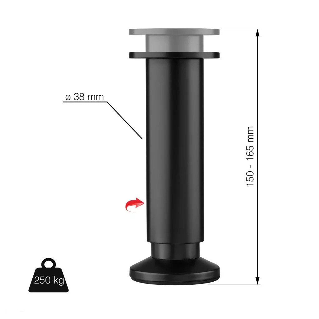 Bútorláb átmérője 38 mm magassága állítható 150-165 mm teherbírás 250 kg matt fekete