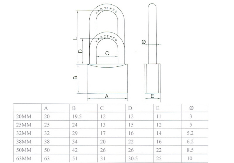 2 kulcsos lakat szélessége : 20 mm kengyel átmérő : 3 mm kengyel alatti szélesség : 12 mm kengyel alatti magasság: 12 mm szín : festett fekete alapanyag : acél