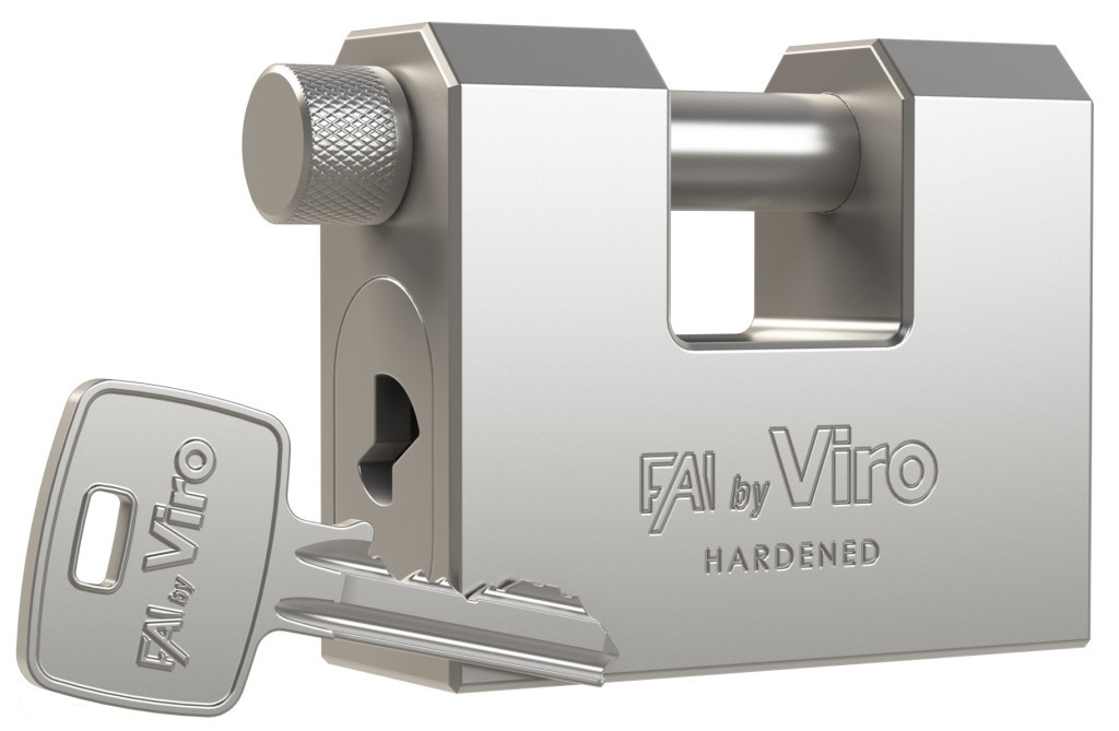 A Viro FAI termékcsaládjának legújabb tagja, a Solid-One monoblokk lakat ideális megoldás magas só- és páratartalmú környezetbe. A gyártásban felhasznált anyagok szilárdságának és a felületkezeléseknek köszönhetően a Solid-One kiváló savállóképességgel is rendelkezik, ezért ideális megoldás kikötőihasználatra, pl. hajók, platformok rögzítésére, veszélyes üzemiterületek, helyiségek zárására, de ugyanígy remekül használható redőnyök, kapuk védelmére. A 6 gombacsapos Viro cilindert egy 4 mm vastag, szabadon forgó edzett acéllemez védi a manipuláció és fúrás ellen. A 3 db nikkelezett acél kulcs a biztonságos Viro Top Security profillal rendelkezik. A Solid-One lakatok azonos zárlatú rendszerben is elérhetők. A lakattömb hőkezelt, rézzel és nikkellel bevont edzett acélból, lekerekített élekkel készült, kopásálló áttetsző festékkel is védve. A vágásbiztos forgó rúdkengyel anyaga edzett, hőkezelt, rézzel és nikkellel bevont acél. A Viro Solid-One tömblakat a szilárdságot, biztonságot és ellenállóságot tanúsító UNI EN 12320 bizonyítvánnyal rendelkezik.
