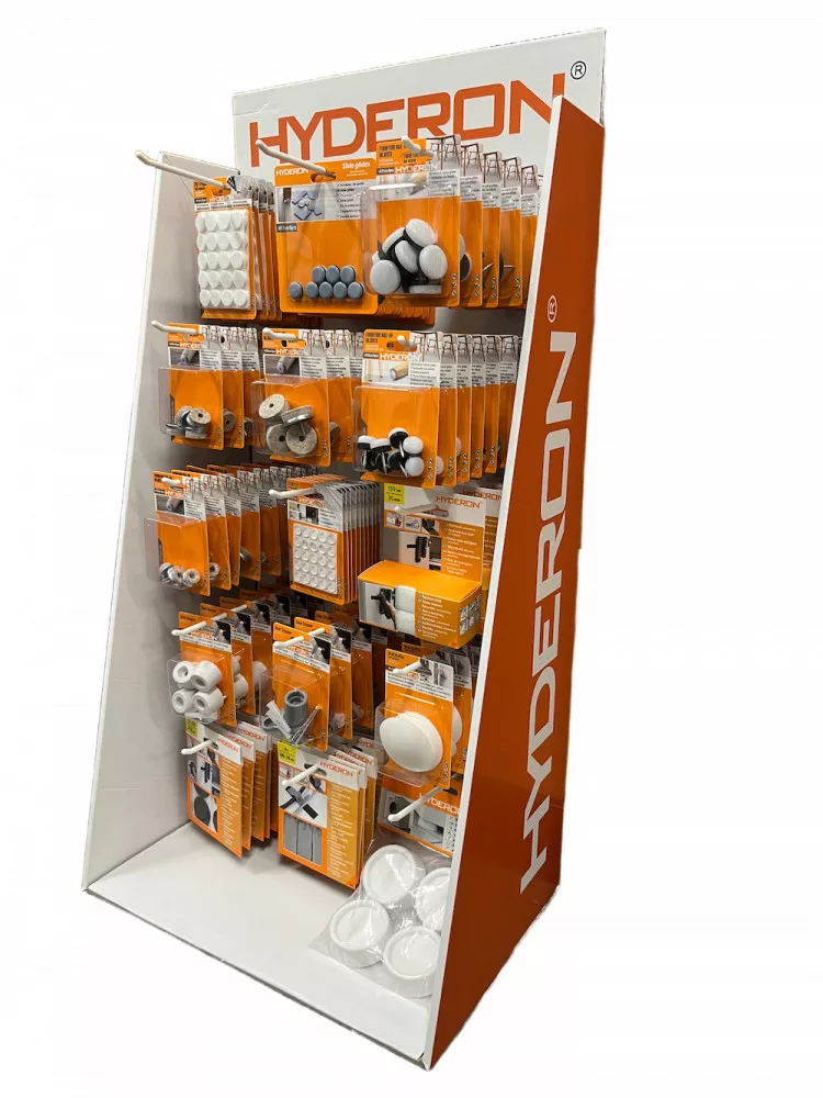 Bemutató állvány méretei: 88 cm x 45 cm x 30 cm (Mag. x Szél. x Mély.) A HYDERON egy kiemelkedő minőségű termékcsalád, amely modern, figyelemfelkeltő csomagolásával magára vonzza a vásárlók tekintetét. A bemutató fal összetétele nem módosítható. Az állványt ingyenesen rendelkezésre bocsátjuk (fal szerződés aláírása szükséges). A HYDERON bemutató állvány csak a Zár-Vasalás 97' Zrt-től vásárolt termékek bemutatására használható. Az állványon található termékek: Cikkszám Megnevezés Mennyiség BÚTORCSÚSZTATÓ FILC ÖNTAPADÓ 17MM FEHÉR 3 DB BÚTORCSÚSZTATÓ FILC ÖNTAPADÓ 22MM FEHÉR 3 DB BÚTORCSÚSZTATÓ FILC ÖNTAPADÓ 25MM FEHÉR 3 DB BÚTORCSÚSZTATÓ FILC ÖNTAPADÓ 28MM FEHÉR 4 DB BÚTORCSÚSZTATÓ FILC ÖNTAPADÓ 35MM FEHÉR
