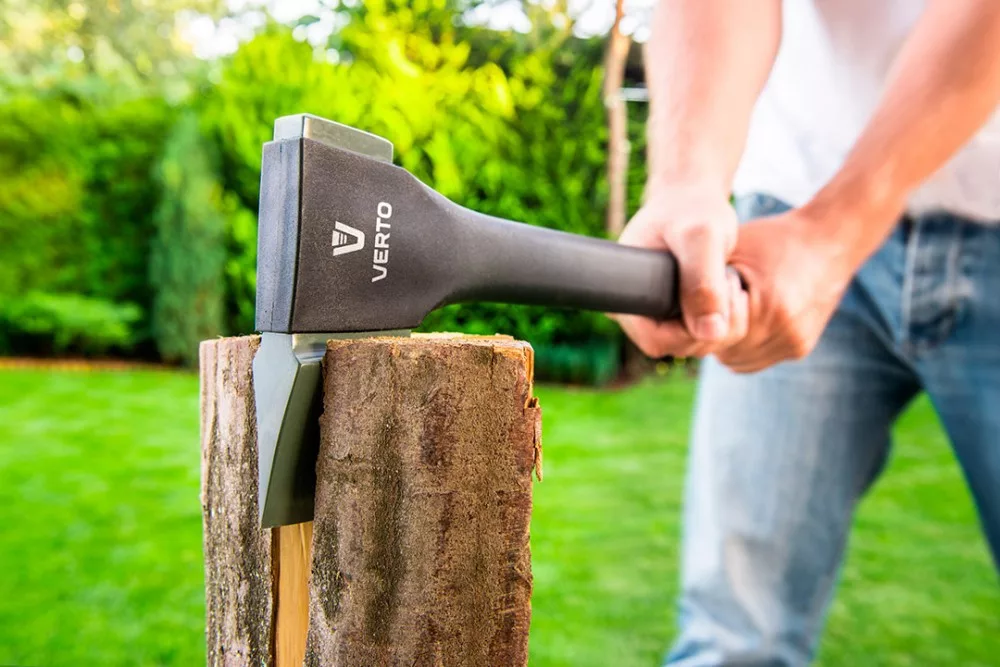 VERTO Univerzális fejsze tömege 620 g és teljes hossza 365 mm. Főként kerti és erdei munkákhoz. A 410 g tömegű fejet PTFE bevonat borítja, védve a korróziótól. Nagyon szívós éle ellenáll a csorbulásnak. Nyele üvegszálból készült, ami nagy mértékben növeli ellenálló képességét a hőmérséklet változásokkal szemben, a nedvességgel és a mechanikus sérülésekkel szemben, ami növeli a fejsze szívósságát. A csúszásgátló bevonattal ellátott ergonomikus markolat biztosítja a kényelmes és biztonságos munkavégzést. Új, még tartósabb kötés a a fej és a nyél között. A fejsze műanyag akasztóval rendelkezik, ami megkönnyíti a szerszám tárolását. 540 g További méret: 230 mm 355 mm