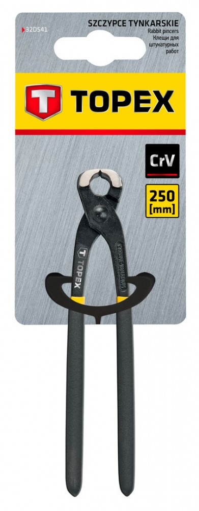 TOPEX Rabitz fogó hossza 250 mm. A szerszám hosszú élettartamát biztosító, nagyszilárdságú króm-vanádium ötvözetből készül. Az ergonómiailag tervezett, csúszásgátlóval ellátott markolat növeli a munkavégzés biztonságát és komfortját.