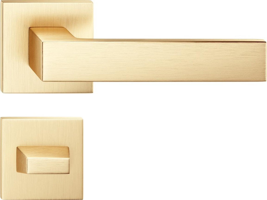 FOCUS ajtóajtókilincs szögletes rozettás Q SLIM vékony szatén sárgaréz - CORONA PREMIUM WC