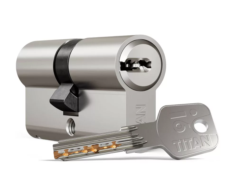 Titan I6 Biztonsági kuplungos és Törésvédett Hengerzárbetét 10/40 Szatén Króm Felület (5 Kulcs)
