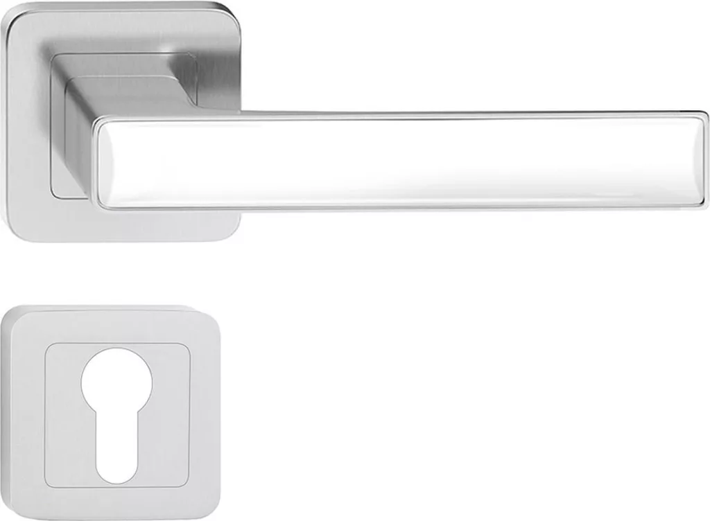 DECO ajtókilincs kerek rozettás szatén nikkel + fehér PZ