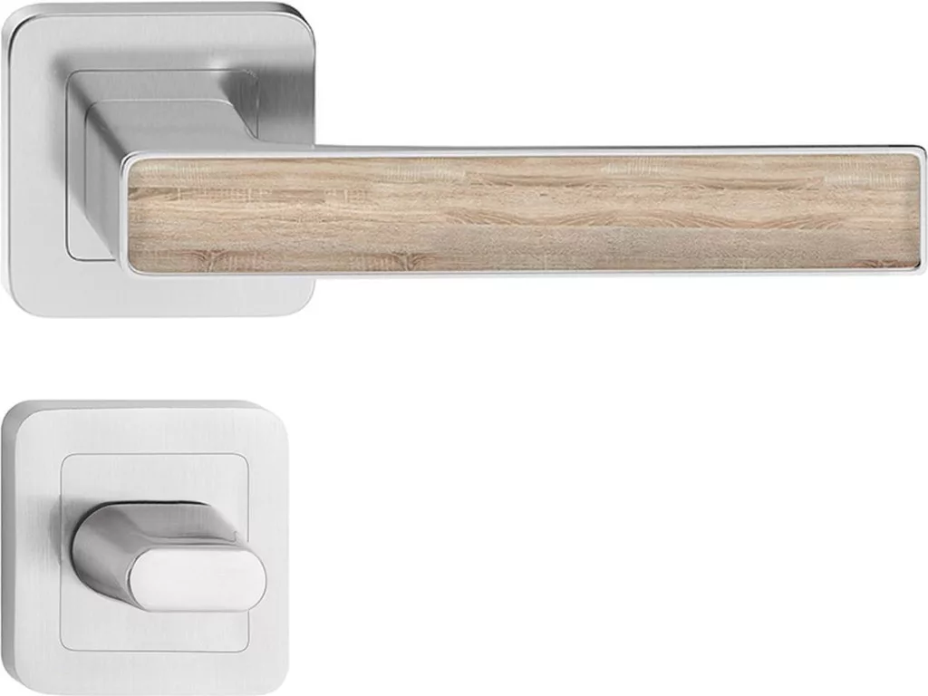 DECO ajtókilincs kerek rozettás szatén nikkel + sonoma tölgy WC