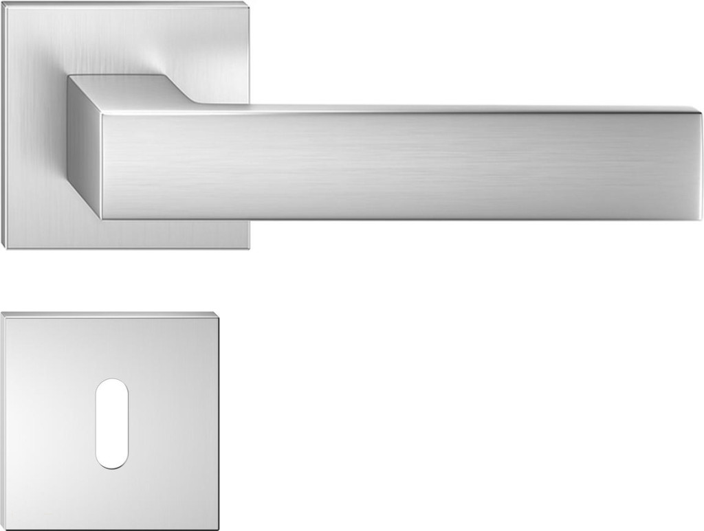 FOCUS ajtókilincs szögletes rozettás Q SLIM vékony szálcsiszolt króm matt - CORONA PREMIUM BB